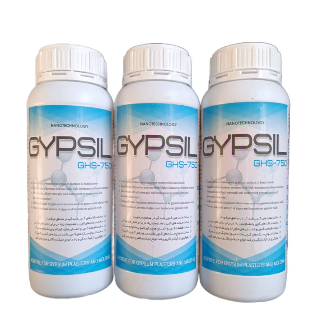 ژیپسیل (GHS-750) یک مخلوط حاوی مواد فعال واکنشی می باشد، که میتوان با مصرف این محصول در ساخت قطعات گچی و همچنین انواع پلاستر های حاوی گچ و آهک ، جهت ضد آب کردن و افزایش مقاوت فشاری و سایشی گچ ، یک محصول متراکم با نفوذپذیری بسیار کم تولید نمود.