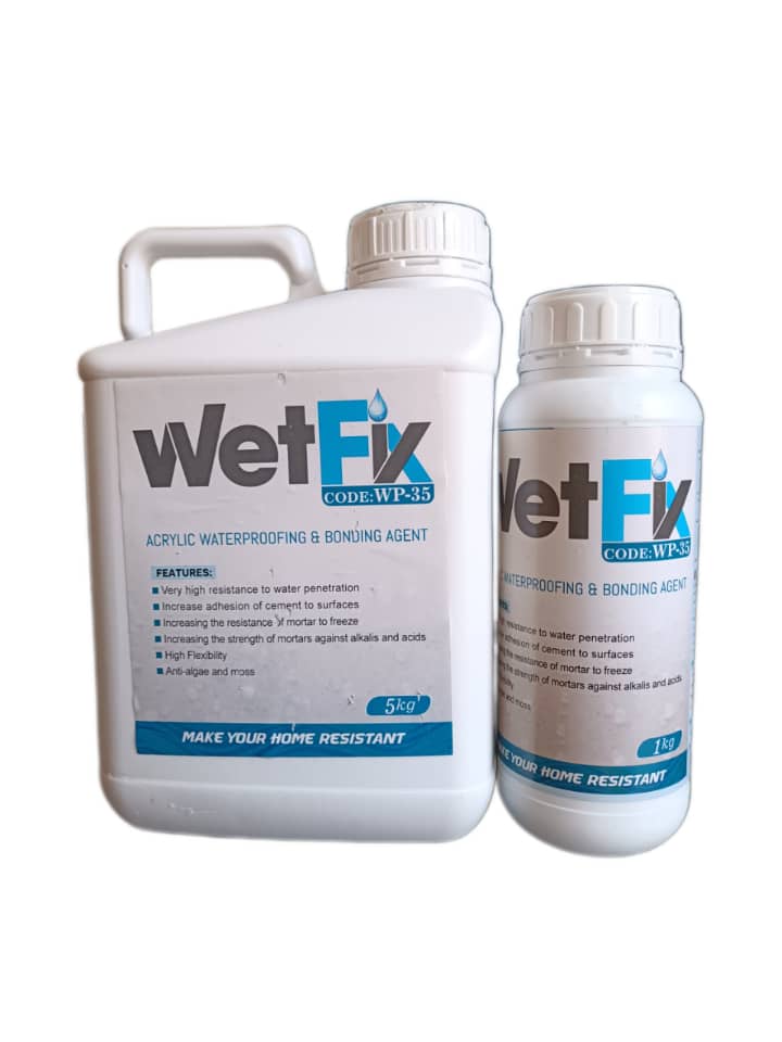 محصول وت فیکس WP-35 یک محصول برپایه لاتکس های چند زنجیره ای نسل سوم می باشد. WP-35یک محصول با کاربرد دوگانه می باشد که بعنوان یک افزودنی آببند بتن و ملاتهای پایه سیمانی مصرف نمود